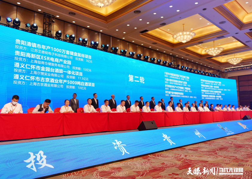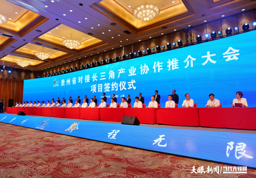6月1日上午,贵州省对接长三角产业协作推介大会在上海国际会议中心举行。会上举行了招商引资签约仪式,现场集中签约项目46个,签约金额466.32亿元。签约项目涵盖新能源汽车及电池材料、大数据电子信息、航空航天及装备制造、文化旅游、酱香白酒、基础材料、现代化工、现代能源、现代商贸、现代金融、现代物流、生态食品等产业。