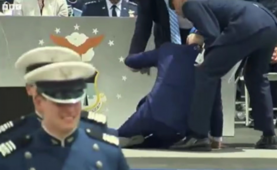 美国有线电视新闻网(CNN)消息,当地时间6月1日,美国总统拜登在克罗拉多州出席美国空军学院毕业典礼时被现场一个沙袋绊倒,在众目睽睽下狠狠摔在讲台上。拜登随后自己站了起来,还用手指了指自己摔倒的地方,表示是有什么东西绊到了他。白宫发言人随后称,总统并无大碍。