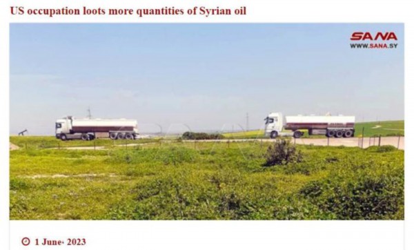 中新网6月2日电 据叙利亚国家通讯社(SANA)报道,当地时间6月1日,美国在叙利亚的非法驻军从叙利亚查泽拉地区和东部地区的油田盗取石油,并使用数十辆油罐车通过非法越境点,将石油运至伊拉克北部地区。