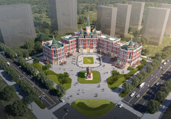 (霍尔果斯市骆驼广场旅游休闲商业街区效果图)