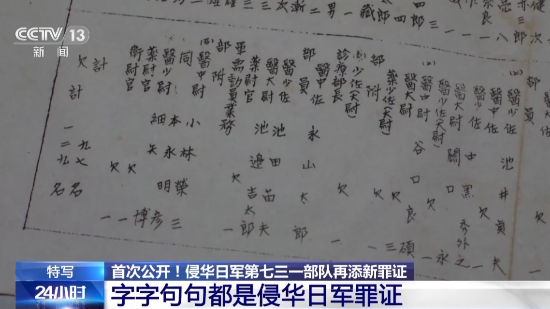 侵华日军第七三一部队罪证陈列馆馆长 金成民:这次发现的职员表来看,和我们以前发现的七三一部队队员构成人数、和后来发现的留守名簿,它们能够从头到尾真正地能把七三一部队的从无到有,从小到大,到关键发展到恶性膨胀,到最后灭亡的这样的全过程,给大家一个交代,是一个(证据)链,是完整的。