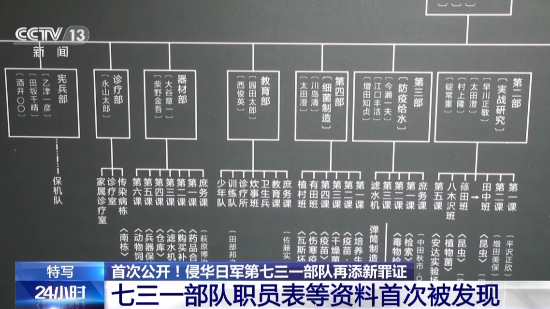 侵华日军第七三一部队罪证陈列馆馆长 金成民:这批档案资料的发现十分重要,是七三一部队产生、发展过程当中最关键的一个环节,这是七三一部队真正膨胀的开始,管理层也就是低级军官,高级军官(编制人数)合计达到了455人之众,意味着日本的最高层确定七三一部队规模、体量变大。这支部队所谓的业务,在日本在战争中要发挥的功能性,得到了日本高层的重视关注和支持,他们认为这是日本必须要走的一条,可能为战争取胜的一条道路。