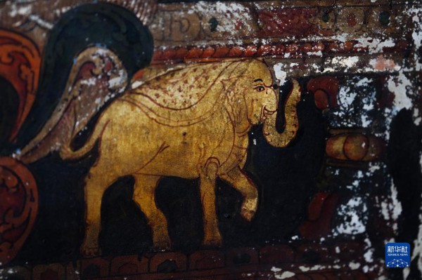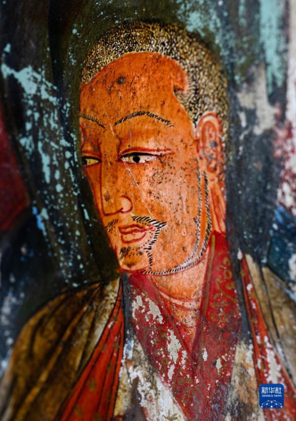这是5月26日拍摄的皮央石窟壁画中的人物造型。新华社记者 费茂华 摄
