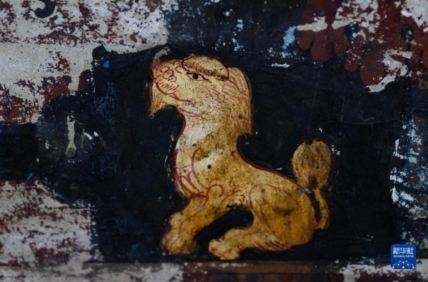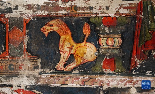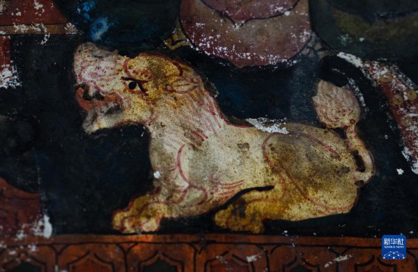 这是5月26日拍摄的皮央石窟壁画中的狮子像。新华社记者 费茂华 摄