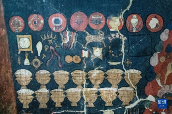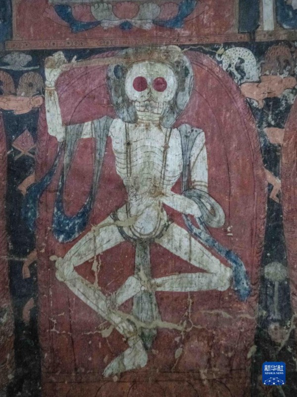 这是5月26日拍摄的皮央石窟壁画中的骷髅造型。新华社记者 晋美多吉 摄