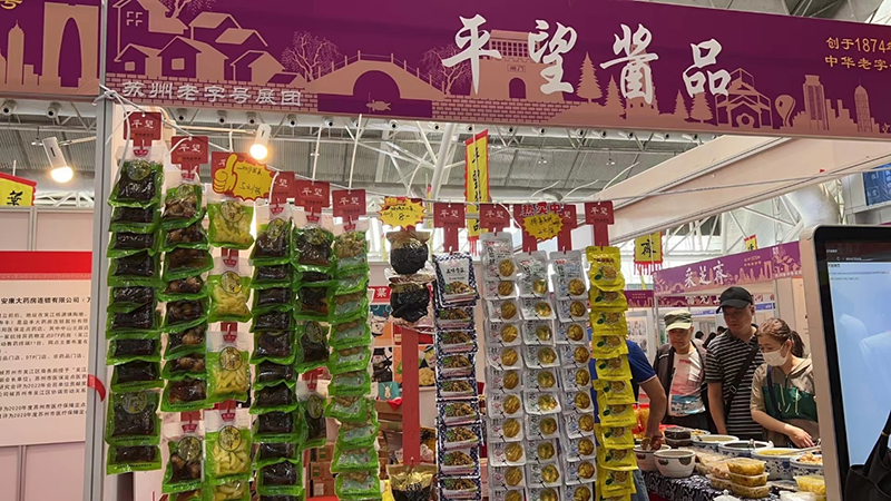 “我一共带过来2万多货值的酱菜,一个上午卖了一大半!”苏州平望酱菜展台,平望老字号市场运营总监余广朝告诉记者。