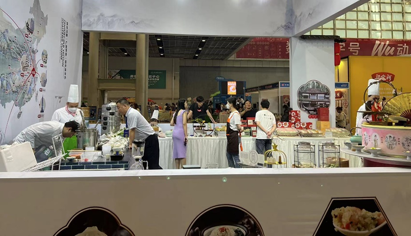 临近中午饭点,在 “镇江锅盖面”“泰州早茶”“扬州早茶”三大餐饮美食展区,陶大面馆、张嫂子、卢氏面艺世家、刘府早茶等8家镇江老字号锅盖面现场烹饪,红烧牛肉面、长鱼面、滋补鸡汤面、大肉面、大肠面……面条劲道、味美汤鲜。4家泰州早茶老字号带来泰州烫干丝、鱼汤面、蟹黄汤包、黄桥烧饼等特色早茶,扬州冶春带来阳春面、烫干丝、千层油糕、松子烧卖、三丁包、香菇菜包等扬州早茶名点。三牲五鼎、八珍玉食,让人食指大动、大快朵颐。不出金陵,即可享受地道苏式早茶。