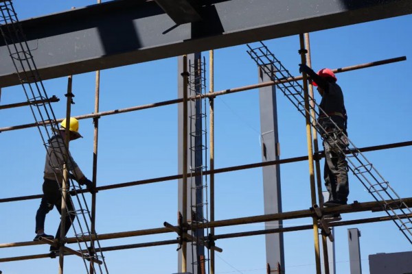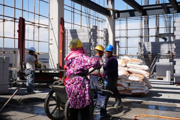 (工人加班加点抢工期)
