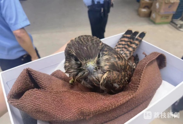 “警察同志,我们在厂里水塘中捡到一只鸟,看着有点像小红隼。请来看一看!”6月3日中午,镇江丹阳市公安局司徒派出所接群众报警,辖区工业园某食品厂内发现一只疑似保护禽类。