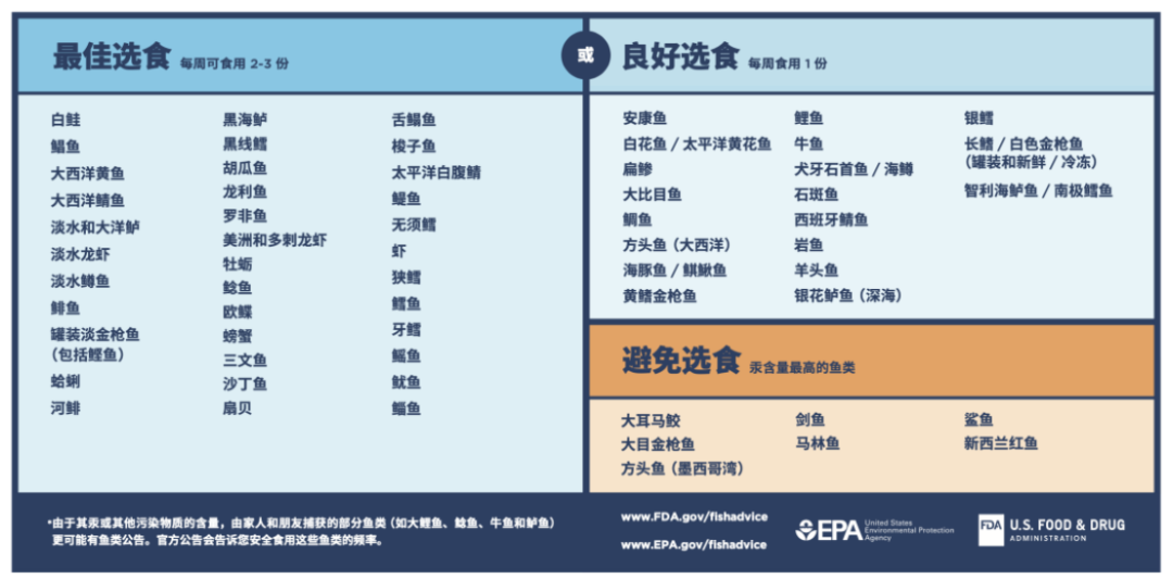 ▲图源:美国 FDA 鱼类食用建议