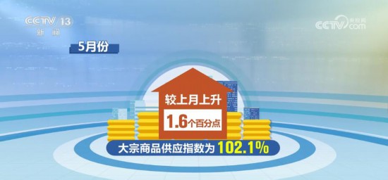5月份,中国大宗商品指数为100.7%,较上月回升0.4个百分点。分析认为,5月份指数止跌回升,主要是受到代表供应端的供应指数和库存指数止跌回升拉动所致。