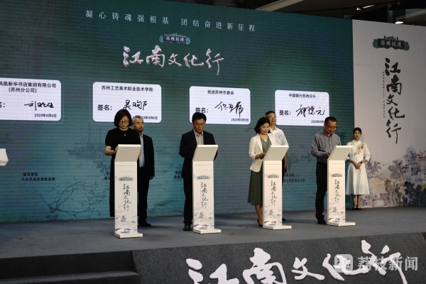 当天,民进苏州市委会还与苏州工艺美术职业技术学院、中国银行苏州分行、江苏凤凰新华书店集团有限公司苏州分公司现场签署合作共建协议,合力打造苏城工艺大师平台,共建书香江南、文化江南,助力苏州江南文化繁荣发展。