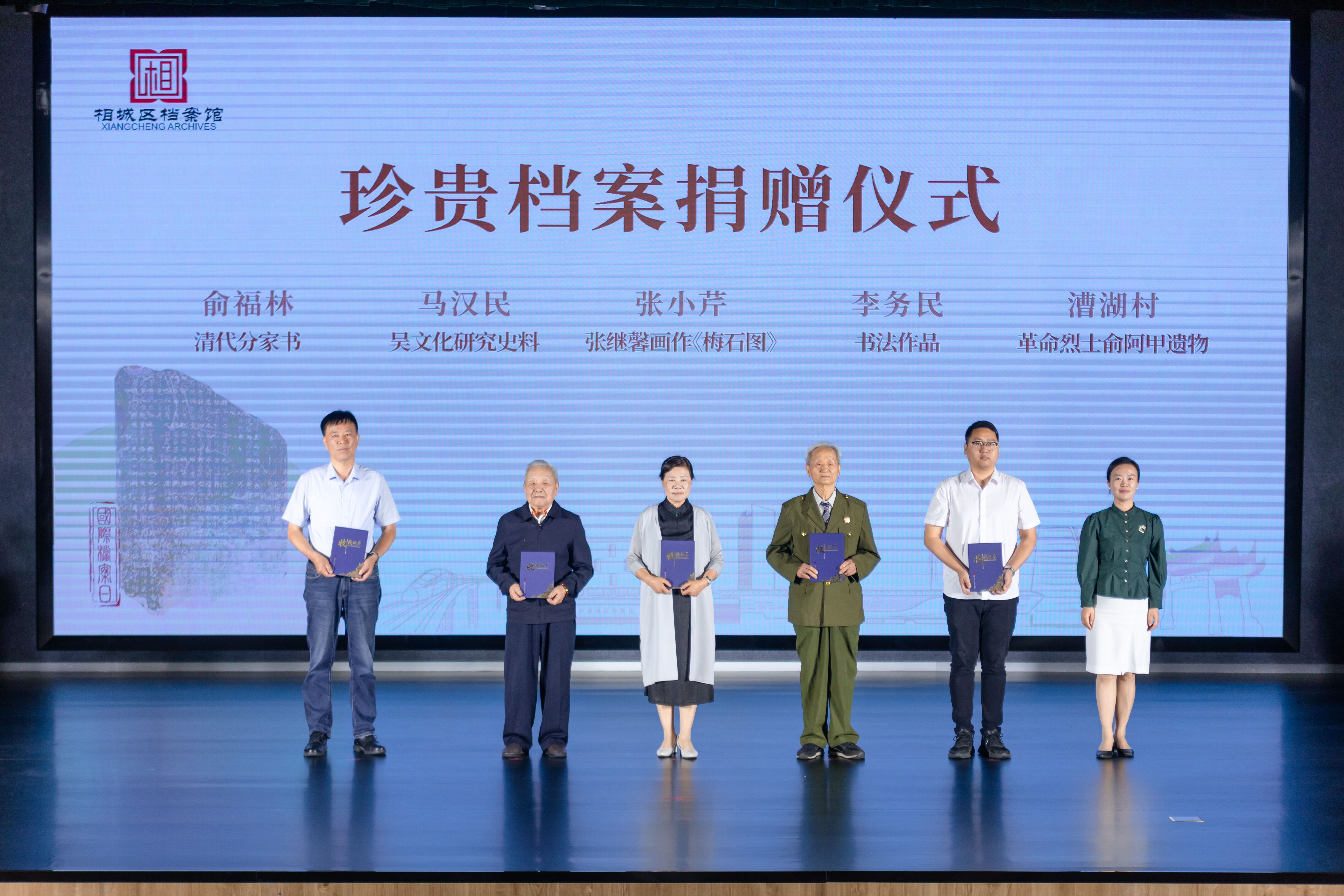 活动中,大批精品档案集中亮相并进行捐赠。吴门画派代表人物张继馨的画作《梅石图》,革命烈士李雪舟长子、著名书法家李务民的书法作品,清代光绪年间北桥地区的分家书,革命烈士俞阿甲遗物,还有文化学者马汉民研究吴文化的珍贵史料《冯梦龙口碑拾零》,这些档案资料,为研究相城地方文化提供了珍贵的第一手材料,更是红色基因传承的永恒载体和鲜活教材。同时,为广泛征集档案史志资料,充分发挥档案“存史、资政、育人”的重要作用,活动现场为第二批档案史料征集顾问颁发聘任证书,以深入挖掘相城地区档案史志文化资源,进一步扩大档案文化传播影响力。