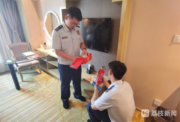 在考点附近的双门楼宾馆,消防监督员对重点区域进行了隐患清理排查,督促单位落实消防安全主体责任,切实做好内部巡检及看护工作,及时发现和消除火灾隐患。南京市消防救援支队消防宣传员梅亮提醒广大考生及家长,入住宾馆后应熟悉了解客房周边环境与疏散通道,包括房间内的灭火器、过滤式自救呼吸器、手电筒的摆放位置,做到有备无患。