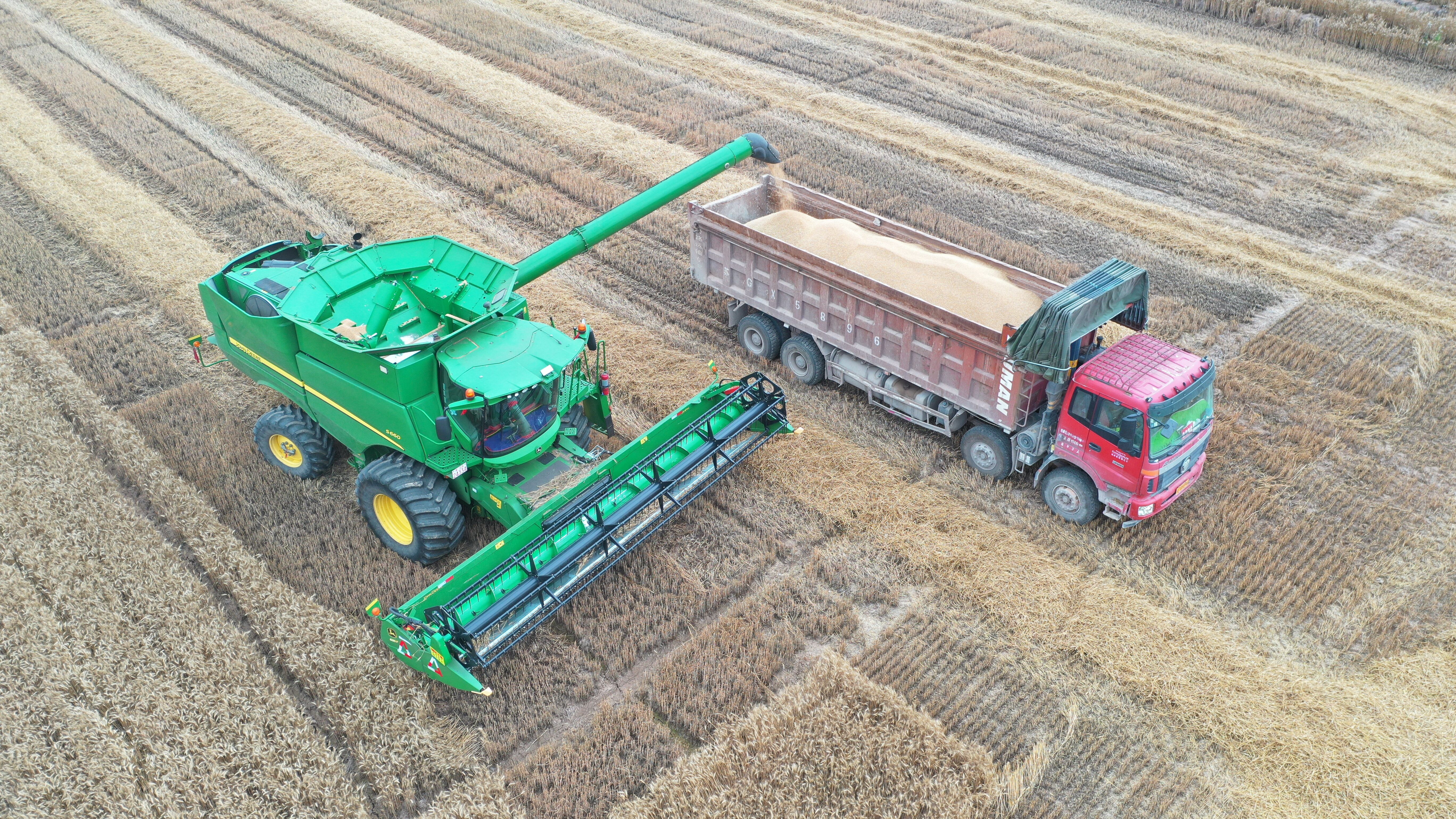 说起今年的小麦收成,邵飞脸上洋溢着满意的笑容:“今年小麦的亩产肯定能实现连增,这离不开先进种植装备和技术。100多亩小麦,过去使用人力收割,一人一天只能收割一亩地,现在有了传统收割机,还采用无人收割,一天就能把小麦全部收割好。”