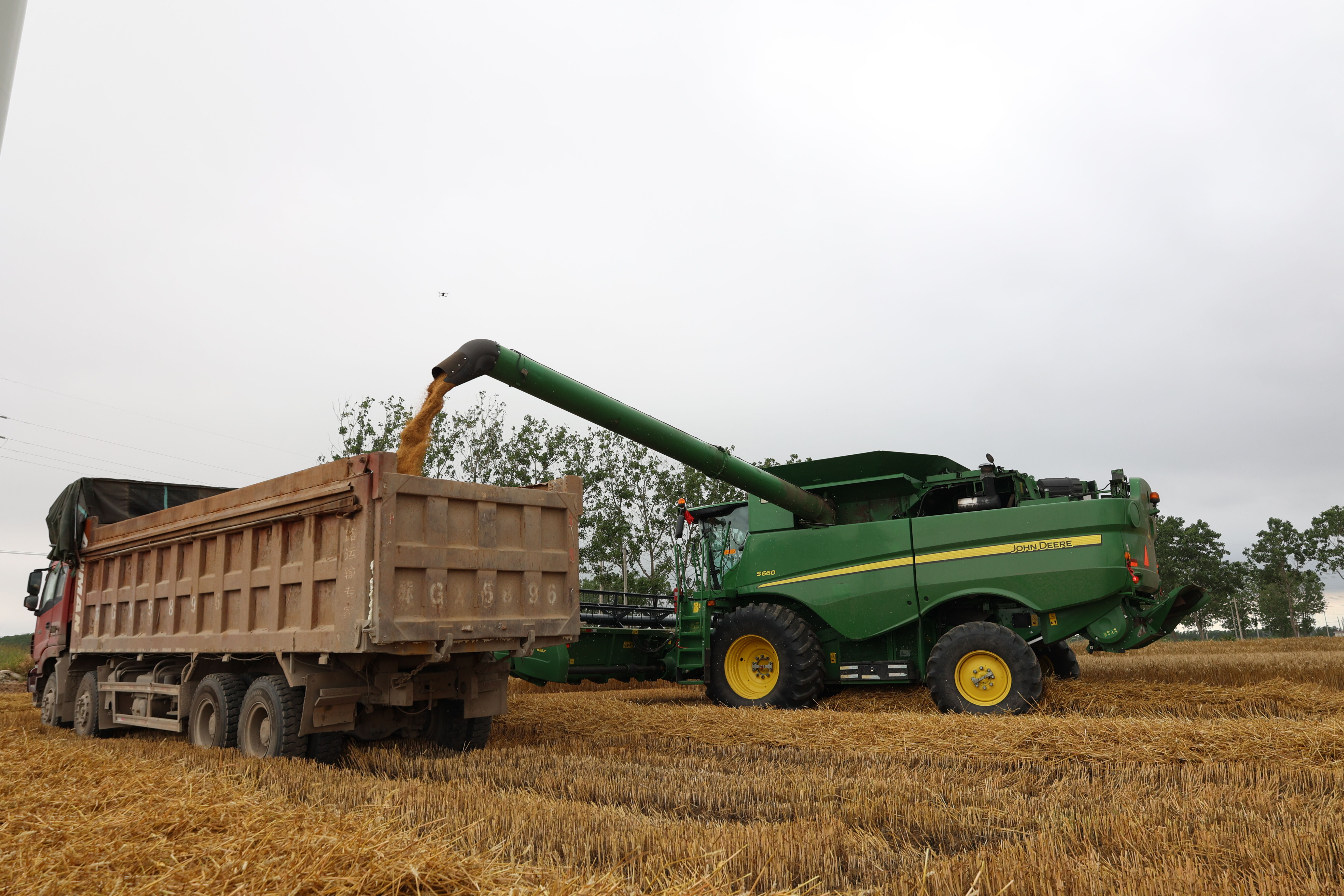 又是一年夏收时,风吹麦浪遍地黄。“轰隆隆,轰隆隆……”6月6日,江苏省盐城市响水县南河镇种植大户邵飞的农田里只闻机械响,不见人奔忙。无人驾驶的收割机在麦田中稳稳行驶,一茬茬小麦被收割机“吞进肚子”里,拨禾切割、传输脱粒、粉碎匀抛、智能卸粮,一气呵成,操作人员用手机APP实现远程控制。