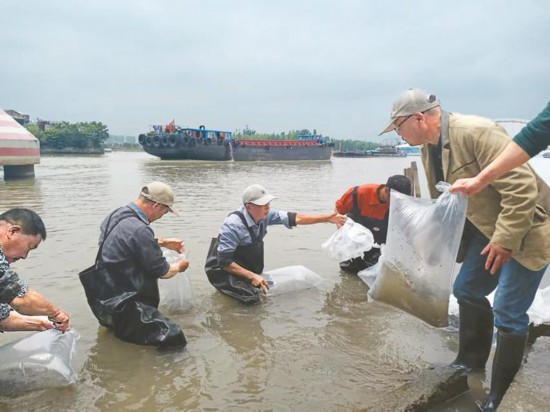 6月6日是“全国放鱼日”,本次主题是“养护水生生物资源,促进人与自然和谐共生”。当天上午,泰州市海陵区农业农村局在新通扬运河迎江桥段举行放鱼活动,现场增殖放流草鱼、鲢鱼、鳙鱼等淡水苗种180万尾。唐春杰 张峰摄