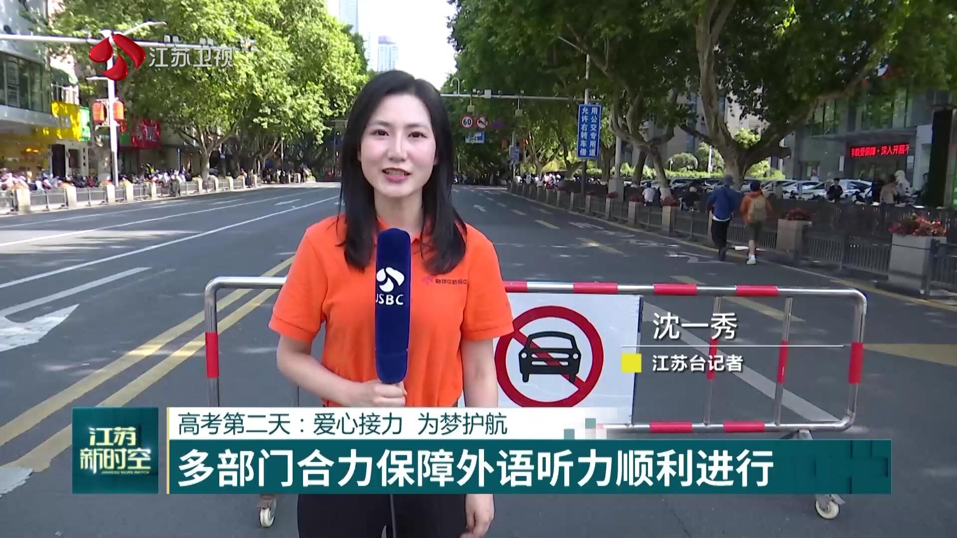 江苏台记者王尧:南京市第九中学考点靠近主干道,周围还有商圈。为了保障考生听力顺利进行,交通部门增派警力提前到岗到位,对考场周边进行交通疏导,为考生提供良好的应考环境。