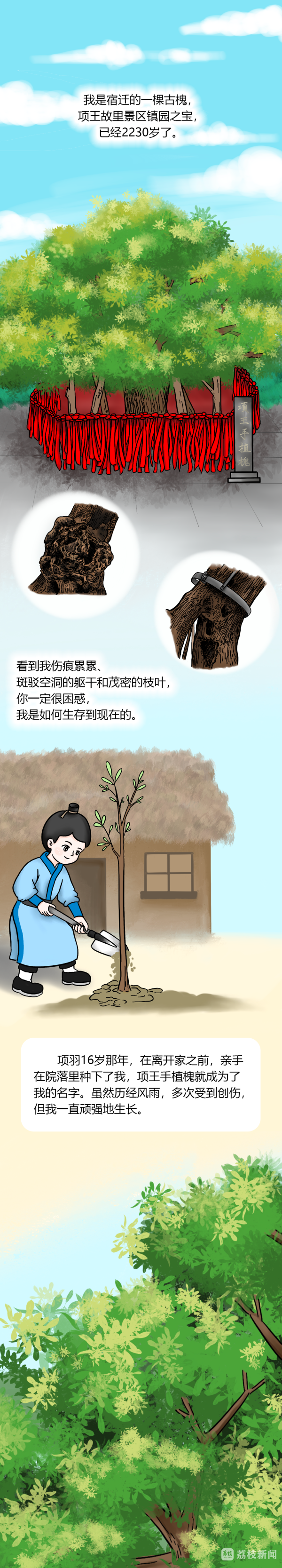 古树名木被称为“绿色活化石”,记录了大自然的历史变迁,孕育了自然界绝美的生态景观,具有极其重要的历史、文化、生态、科学研究和经济价值。在宿迁,有一棵古槐,虽历经千年风雨,却依然苍翠挺拔、枝繁叶茂。在它的历史“年轮”中,遇到了一位让它重焕“青春”的老人,演绎了一段人与树的温情故事,让我们通过这棵古槐来认识这位老人。