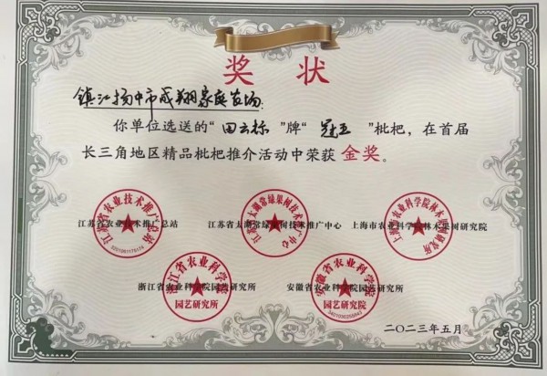 此次在苏州举办的首届长三角地区精品枇杷推介暨长三角枇杷产业技术交流活动由江苏省农业技术推广总站、江苏省太湖常绿果树技术推广中心、上海市农科院林木果树研究所、浙江省农科院园艺研究所、安徽省农科学园艺研究所等单位联合主办。镇江扬中市成翔家庭农场生产的“田云标”牌“冠玉”和扬中市知青滩家庭农场生产的“长江边上的金果”牌“白玉”均获得金奖,为镇江市枇杷产业发展树立了良好的示范引领作用。