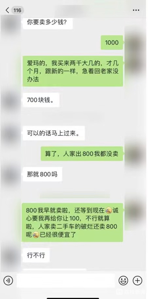 与此同时,在界牌镇本地群众的朋友圈中,每隔一段时间,就会有人发布一条信息,内容为:“因本人要回老家,现出售一台电动车,车子还很新,需要的请联系我”,或者直接为“出售一辆闲置电动车,诚心需要的联系”,后面附手机号码。