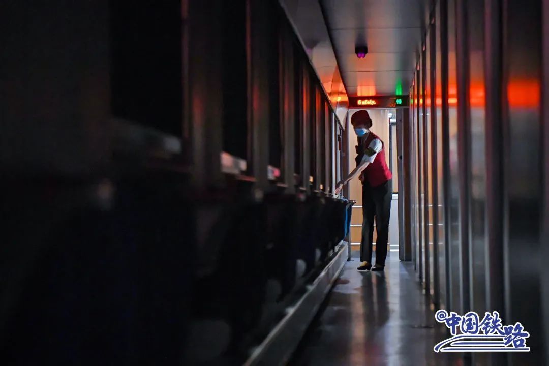 在夜间服务时段,乘务员会适时调整车厢照明亮度、停止车厢内的宣传广播、放下车窗遮光帘,为旅客营造浓厚地睡眠氛围。
