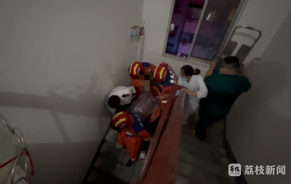 6月8日晚上9点左右,镇江市消防救援支队指挥中心接到报警称,丹阳市某小区6楼有病人急需救治却无法下楼。119指挥中心立即调派辖区内消防救援人员赶赴现场救助。