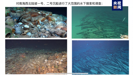南海西北陆坡一号沉船遗物分布及散落范围达上万平方米船载文物种类丰富、数量极为庞大。对南海西北陆坡一号、二号沉船进行了大范围的水下搜索和调查;一号沉船核心区、环形区及二号沉船原木堆积区影像资料采集,初步完成摄影拼接和三维激光扫描;一号沉船核心区遗物分布、船体抵近观察和影像资料记录;二号沉船原木堆积区进行抵近观察和影像资料记录;对散落文物尝试开展抽沙、吹沙实验;底质沉积物、海水、海洋生物等样品的采集。