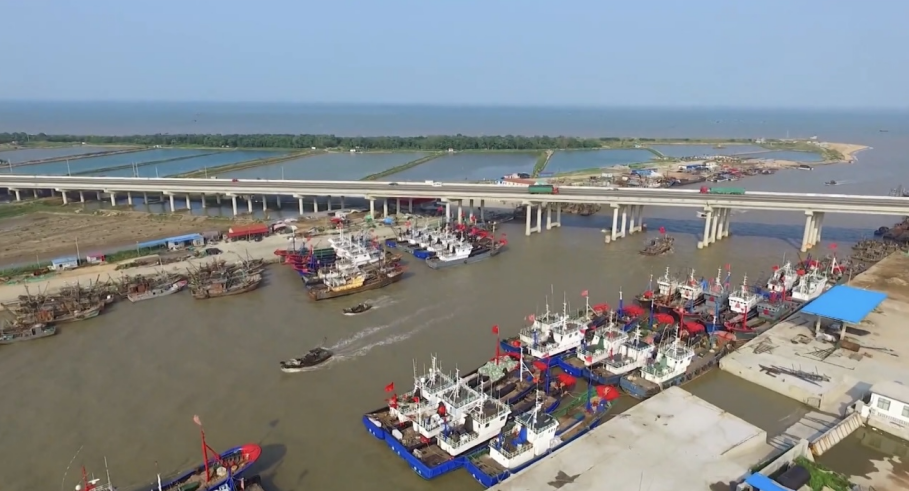 初夏时节,万物繁茂。沿着海滨大道一路向北,穿越45.7公里的黄金海岸线掩映在一片片沿海湿地保护区,满眼的“海水蓝”和“湿地绿”,让人心旷神怡。一排排整齐排列的渔船合着大海悠扬的涛声像一个个奇妙的音符,和弦弹奏着大海圆舞曲。