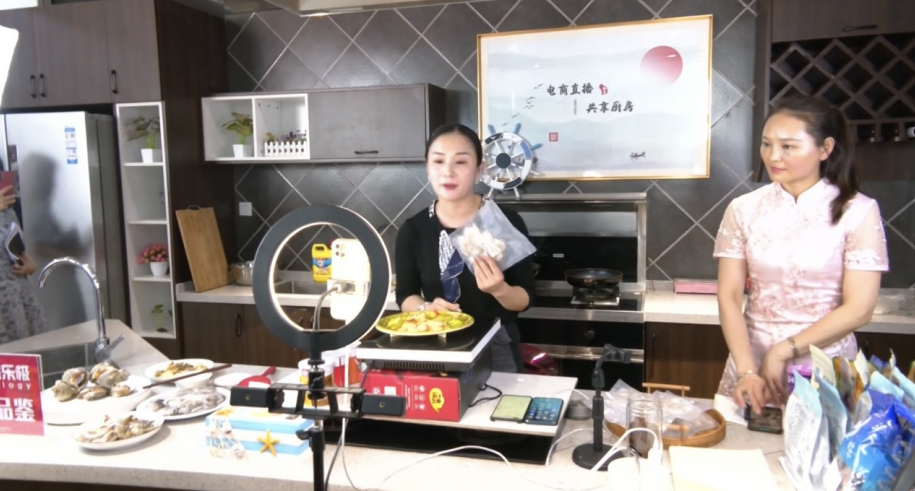 匡立鹏兴奋地告诉笔者:“我从事渔船捕捞也有十多年了,以前在海上出船时,拍点作业起网、逮鱼的小视频在快手等平台播放,吸引不少粉丝关注,为直播带货打下基础。现在休渔期,不能出海作业,也不能拍摄捕鱼短视频,就和家里人一起做起了直播带货,由于休渔期,没有鲜货,主要销售盐冻虾,小八爪,小鲳鱼等冰鲜,每次也能卖个几百单,足够补贴家用。”