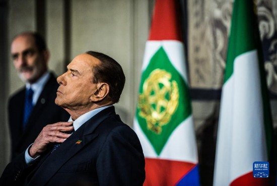 这张资料照片显示的是,2018年4月12日,意大利前总理贝卢斯科尼在罗马出席记者会。新华社记者 金宇 摄
