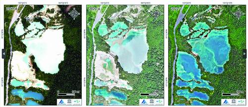 2017年、2020年以及2022年的火花海水域无人机遥感影像图。空天院供图