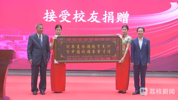 庆典现场,多位校友向母校捐赠了艺术品。南京旅游职业学院校史研究会宣布成立,并为首批研究员颁发聘书;一批优秀校友被聘为学院职业指导师;学院师生还带来了精彩的文艺表演。
