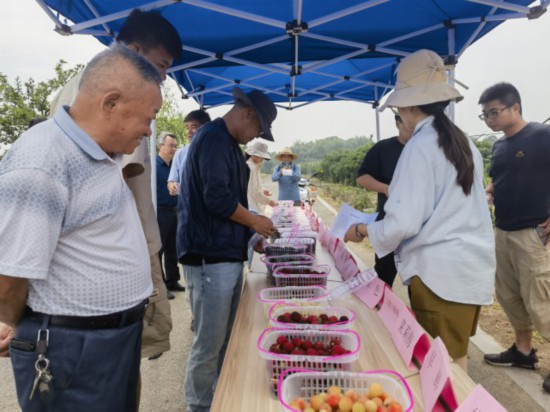 50多位新型经营主体、农技人员,来到现场交流探讨杨梅品种,大家依次观察品尝后,填写了杨梅优异资源调查表,选出了最甜的杨梅资源、最好吃的杨梅资源、最好吃的白杨梅等。新培育的紫晶杨梅,西山早熟品种等杨梅获得好评。