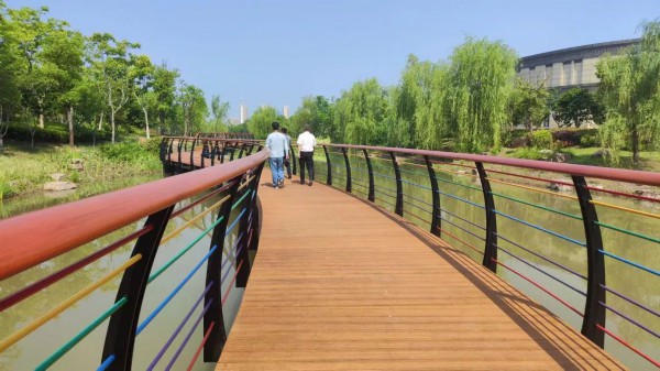 建成之后,这段绿廊将呈现多样景观,包括艺术岛,秋千环,休闲廊架,荧光步道等功能性景观建筑,部分景观是在对生态影响较小的情况下设置活动场地,满足居民使用需求,部分建造使用的材料也是使用了更加环保的再生材料。沿线设计了儿童游乐区、创客草坪、趣味篮球场、荧光步道等特色节点,通过不同区域项目的设置提升通吕运河沿岸的活力,打造具有特色的全龄段景观休闲运动场所。