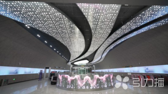昆山文化艺术中心站站厅层没有一根柱子,呈穹顶式格局,视野宽阔,两侧还设置了120米长的LED电子屏,同步营造体育和文化赛事氛围。