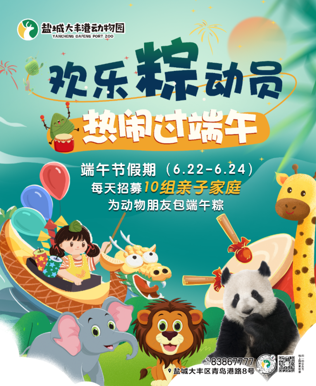 大丰港动物园将在端午3天的假期里,每天招募10组家庭来制作有料、有味的可口粽子,包完粽子后,大家还可以近距离观看小动物们吃粽子时的甜蜜模样!