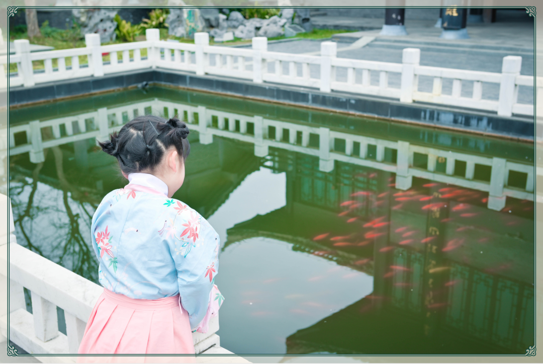 在施耐庵书院内,体验投喂锦鲤的乐趣。