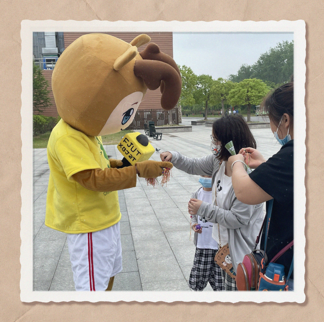 卡通麋鹿不定时出现在景区内,给游客散发“福袋”。