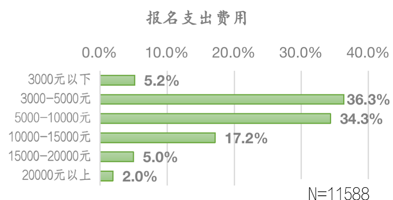 由于考公考研培训时间跨度长,科目繁多,部分课程还涉及住宿问题,因此培训费用一直居高不下。线上问卷显示,24.2%的消费者用于考公考研培训的花销在一万元以上;线下体察员发现,各教育培训机构的主推课程均在万元以上。高昂的培训费用对普通工薪阶层和无收入的学员都不轻松,“培训贷”应运而生。