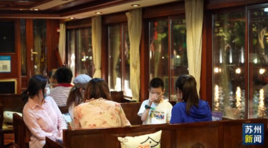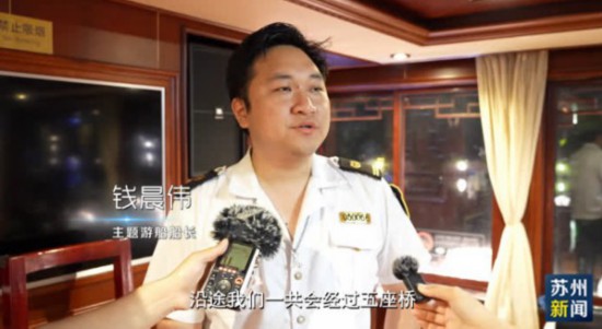 主题游船船长钱晨伟介绍,沿途会经过南园桥、人民桥、盘龙桥、吴门桥、新市桥,可以看到古栈道、古城墙 ,船上有苏州的地方曲艺、评弹表演可以欣赏,到新市桥码头、白居易码头就可以坐到这种游船。