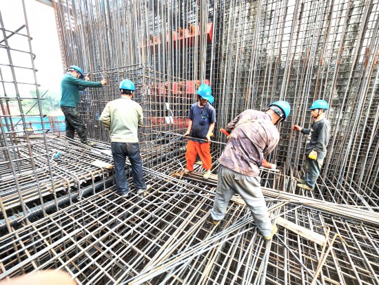 目前西段的箱梁施工快速推进,不少已经连成一线。东段施工现场,工人正在箱梁上部安装模板,为混凝土浇筑做准备。有关负责人介绍,东段的首座座箱梁长80米、宽12.75米、高7米多,体积达7000多立方,今年3月这一箱梁浇筑完成后,其它箱梁建设也在加快推进。