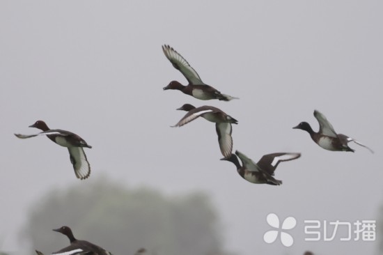 鸭群中的青头潜鸭(右一、右二及右三)