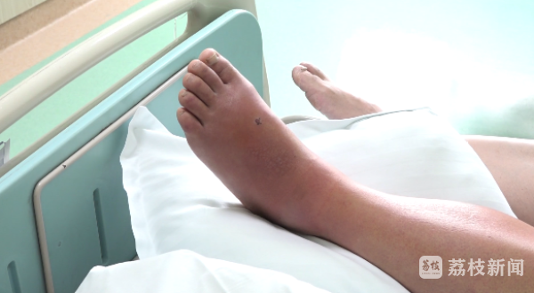 郑先生定睛一看,原来是一条一米多长,大拇指般粗细的大蛇,顿时吓得不敢动。紧急情况下,郑先生用手机数据线给腿部包扎止血。然而过了一段时间,他感觉疼痛难忍,被咬伤的左脚背连带腿部都肿了起来,意识到这是被毒蛇咬了,立即赶往医院。