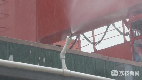 南京市玄武区建设局副局长高保峻介绍,在工地现场,除了围挡上面, 还有在塔吊高架上面, 也装喷淋系统。高保峻说,挖掘机在作业的时候,会产生一些尘土, 工地会按要求小型雾炮、 移动式雾炮都能够跟上。