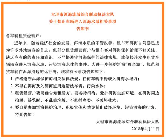 警方也提示,根据大理白族自治州《洱海保护管理条例》相关规定,凡是将车驾驶在洱海水域内、在洱海边洗车、洗宠物等的行为都触犯了《洱海保护管理条例》,都将受到相应的处罚。