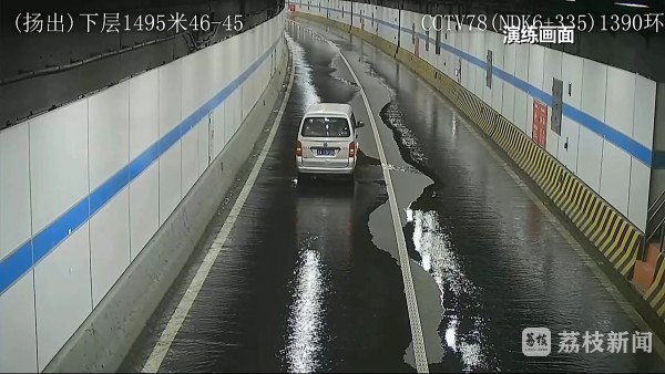 6月26日晚上的11点,南京定淮门隧道扬子江线下层隧道已处于夜间封闭管养的状态,多部门的工作人员在现场进行一场防汛应急演练。演练现场模拟因为特大暴雨,导致大量的雨水倒灌进隧道。扬子江线江南最低点废水泵站的水泵因为失电而无法正常运转,导致隧道内有大量的积水,还有车辆抛锚,有人员受困。