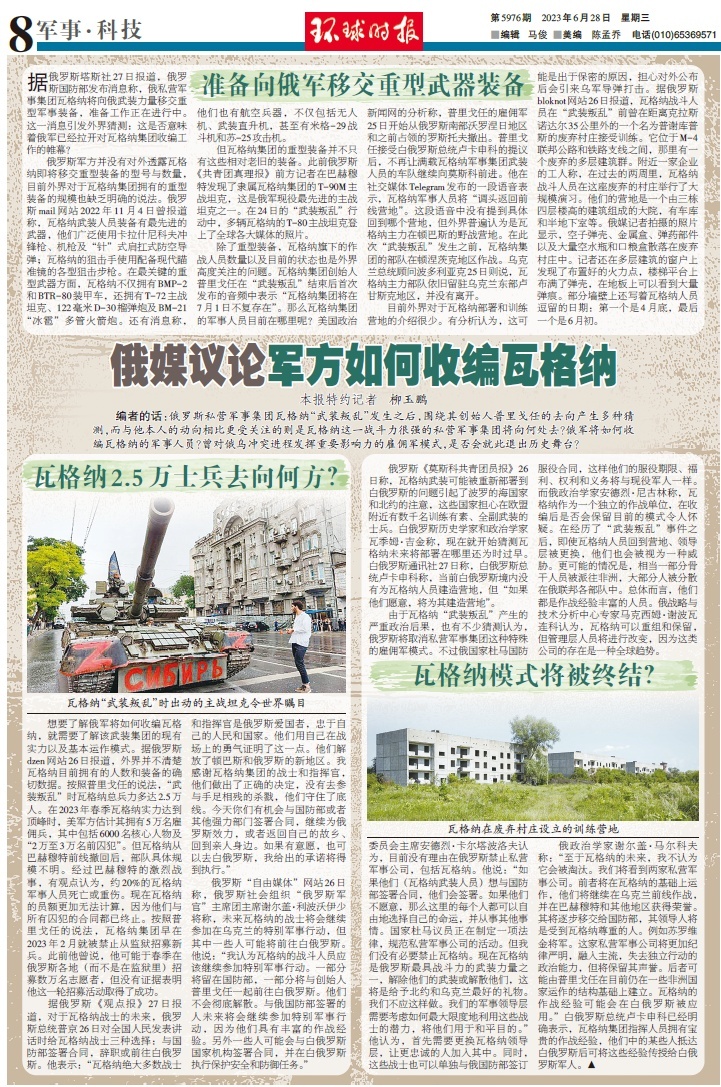 据俄罗斯塔斯社27日报道,俄罗斯国防部发布消息称,俄私营军事集团瓦格纳将向俄武装力量移交重型军事装备,准备工作正在进行中。这一消息引发外界猜测:这是否意味着俄军已经拉开对瓦格纳集团收编工作的帷幕?