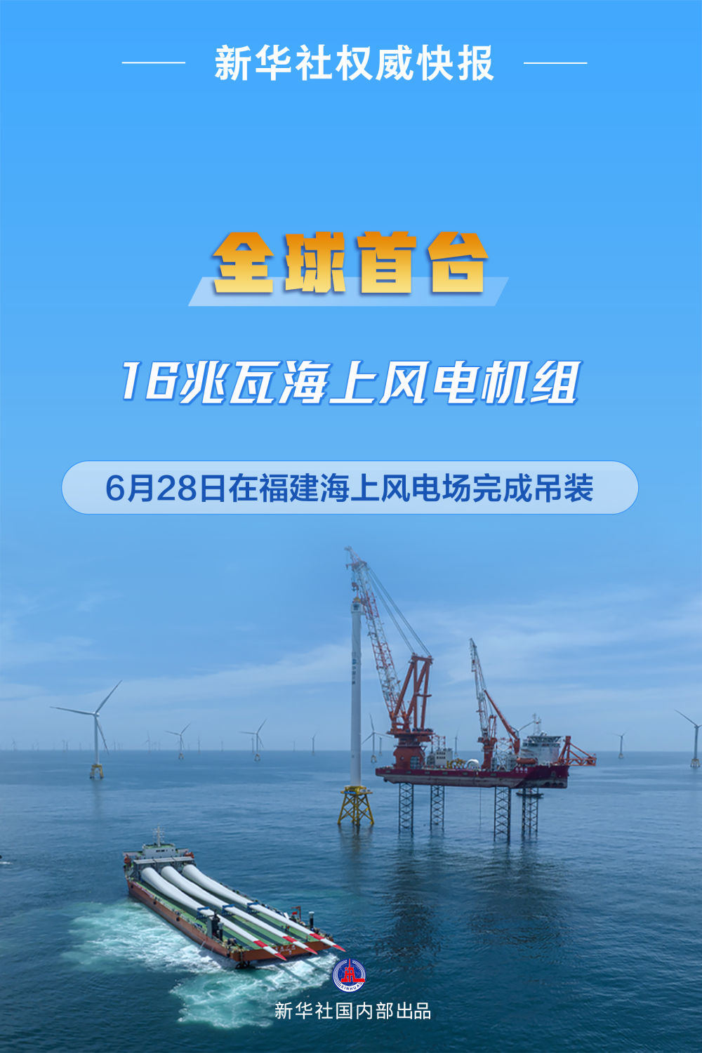 据介绍,这次安装的全球首台超大容量16兆瓦海上风电机组,建成投产后将成为全球已投产的最大海上风电机组。