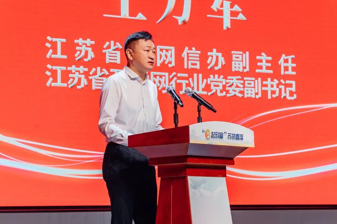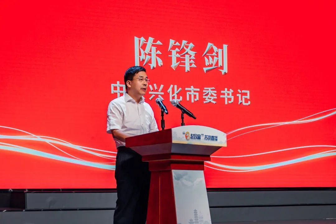 省委网信办副主任、省互联网行业党委副书记王万军,省互联网协会常务副理事长陈夏初,兴化市市委书记陈锋剑,市委常委、宣传部部长陈林峰出席活动并共同启动2023苏货直播新农人培育行动暨兴化市红色主播“e心向党 数字赋能”培训班开班仪式。